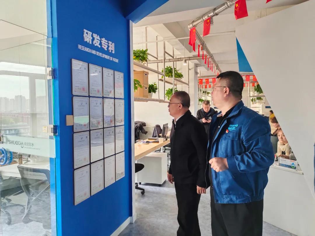 調研過程中,呂菊生會長參觀了碩達智水公司環境,并聽取了托克托商會常務副會長、碩達智水董事長頡春春對企業發展歷程,非公黨建文化建設,以及重點業務市場分布與科研技術專利成果的具體介紹。